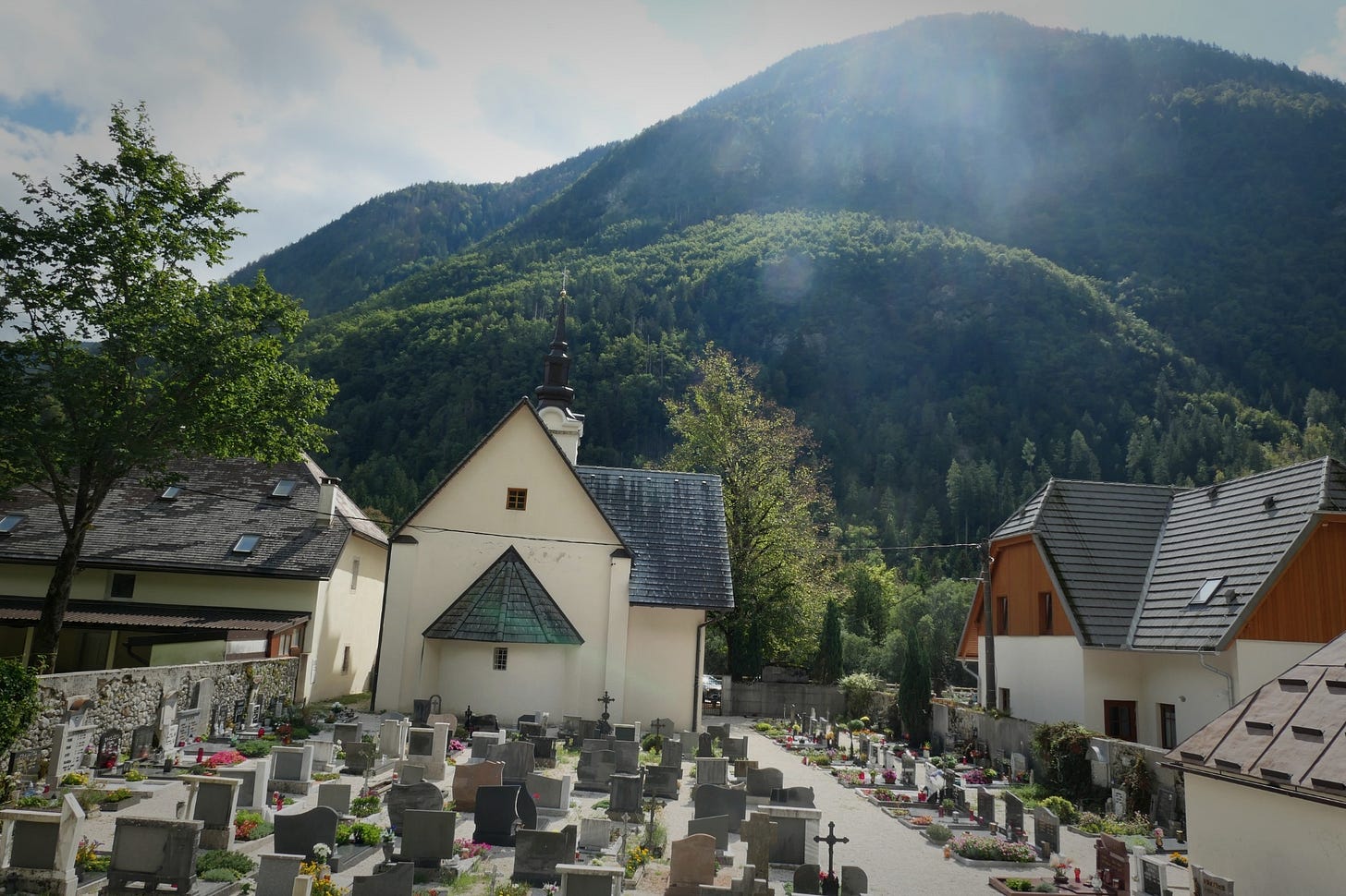 Cool September air in northern Slovenia, 2023. Late-morning sunlight slants through the Norway spruce alpine forest. Ragged peaks rise in the near distance. These are the Julian Alps. Nothing in this stunning landscape suggests war.