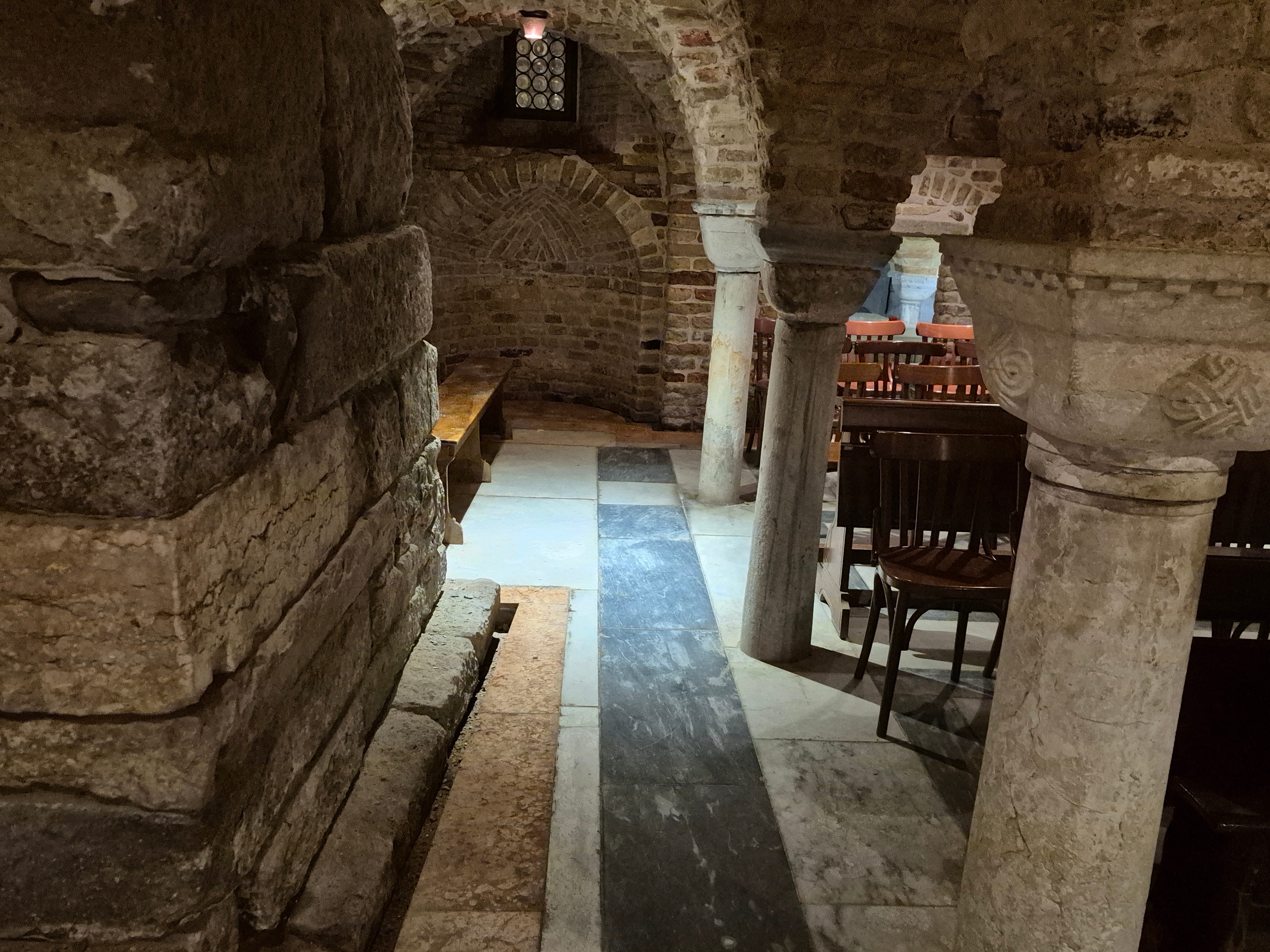 The crypt sits below sea level.