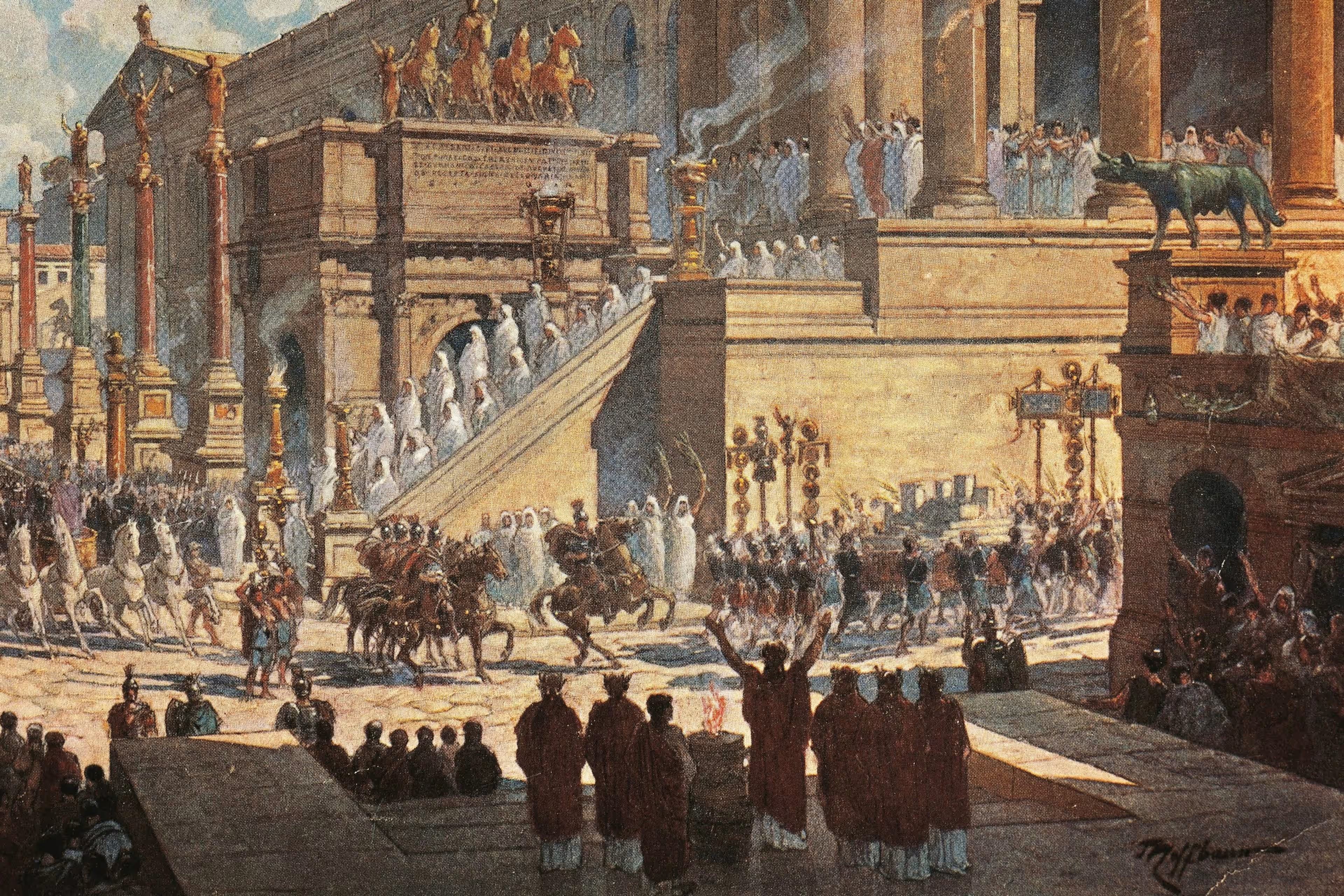 The Rostra was a platform for speeches — victories announced, laws proposed, futures argued into existence. Crowds packed the Forum, shoulder to shoulder, the air thick with heat, sweat, and dust.