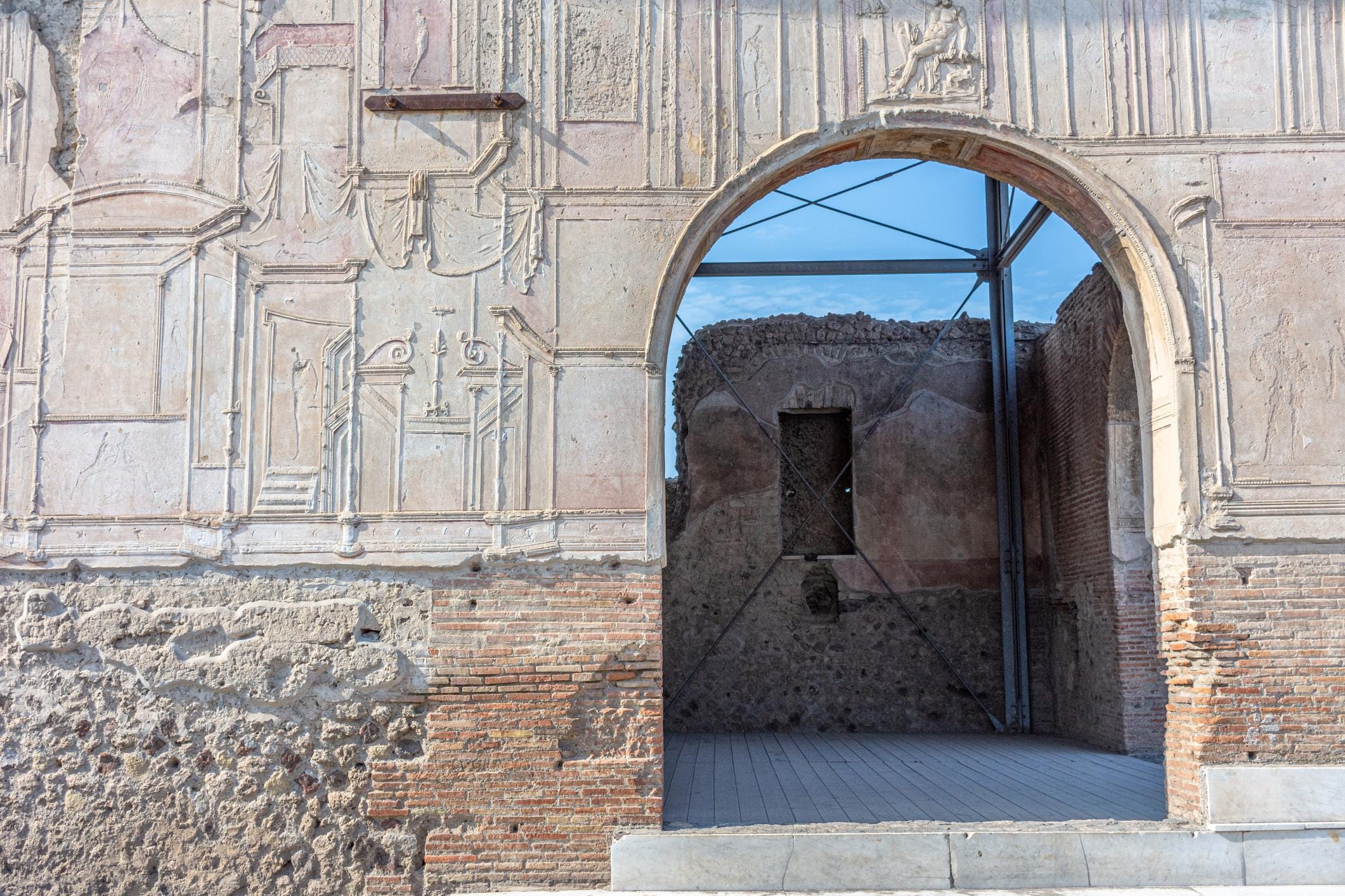 The Roman city covered 163 acres — about 0.66 square kilometers — surrounded by sturdy defensive walls. Several gates once connected it to Roman roads and the busy trade routes of the Bay of Naples.