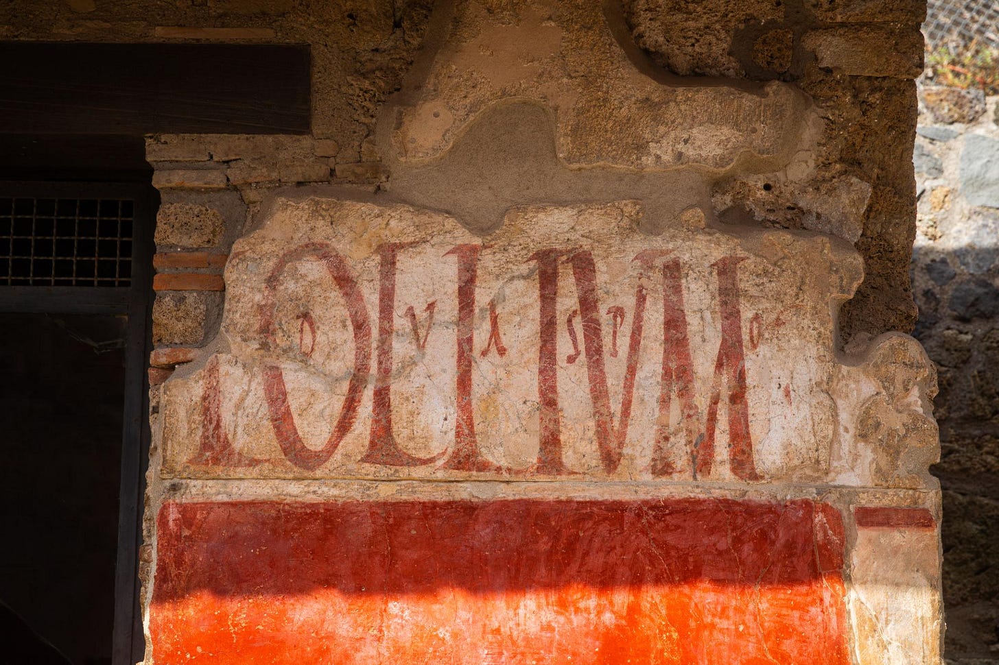 Painted lettering on a Pompeii wall. Alongside these official notices, thousands of residents also scratched their own graffiti into the plaster.