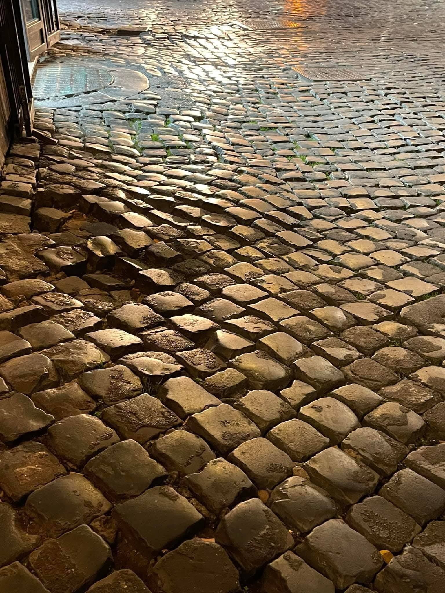 The surface worn smooth from centuries of footsteps, wheels, and time.