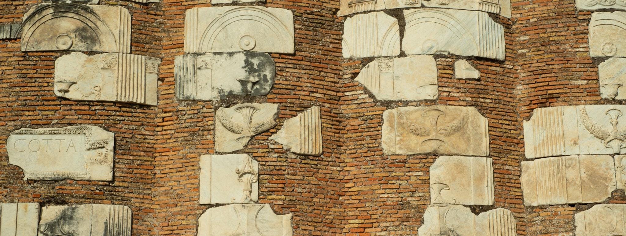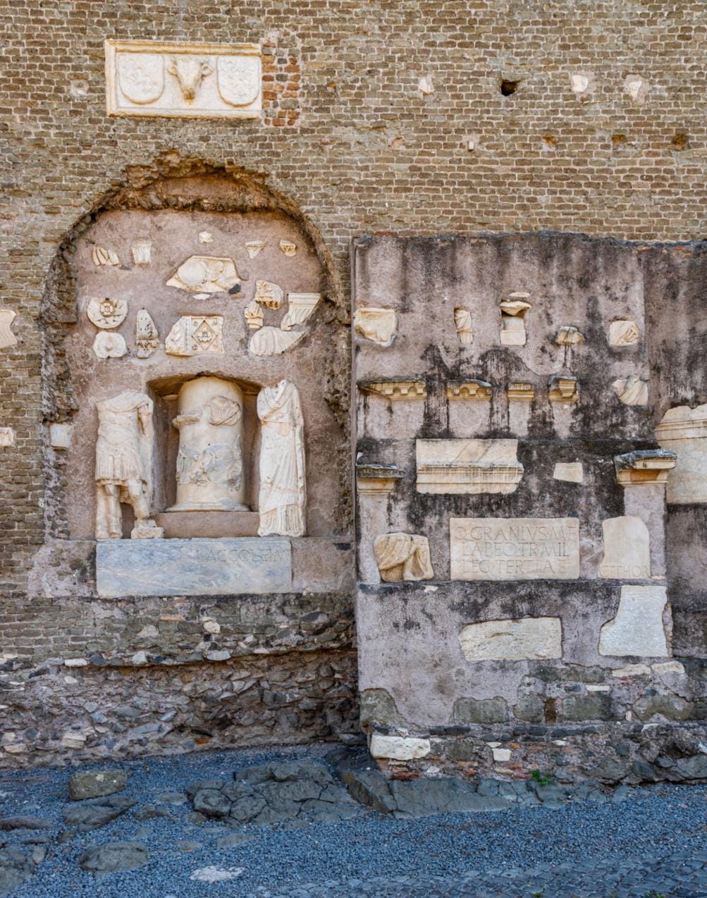 Walk the Appian Way today, and you can still see them: fragments of gravestones set into walls, broken figures embedded in brick, names split across reused slabs.