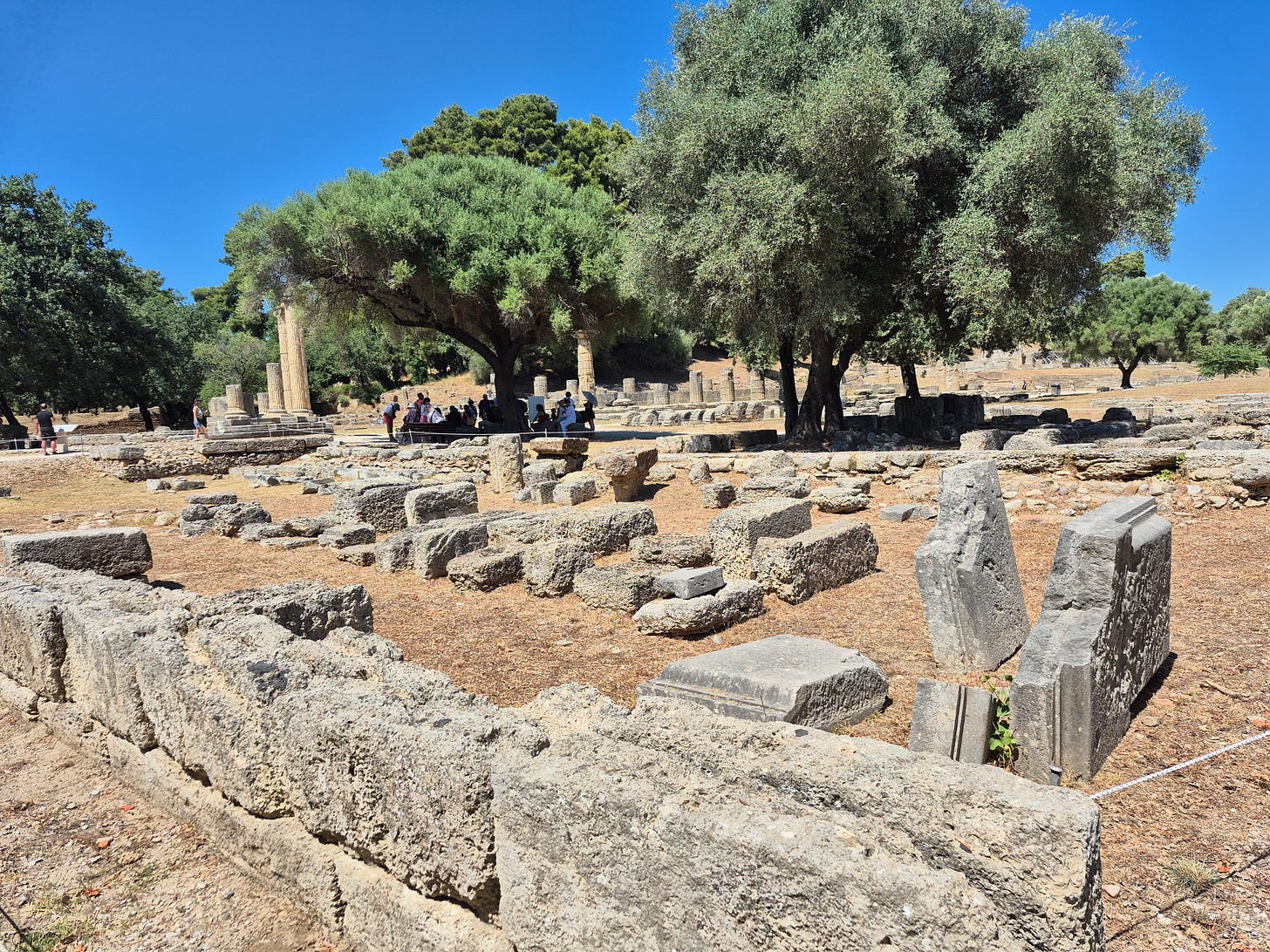 Men competed here naked, their bodies coated in oil and dust. They ran, wrestled, and fought for victory—for the title of the fastest, the strongest. The air would have been thick with heat, sweat, and movement.